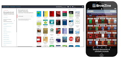 Use BrowZine to easily find, read, and monitor thousands of scholarly journals available from your university, hospital, or corporate library who has a BrowZine subscription, or through Open Access publishers, covering all disciplines.With BrowZine you can:. Browse titles by subject to easily find journals of interest. Easily view table of contents of current and past journals. Create a personal bookshelf of favorite journals. Save articles to EndNote, Mendeley, Zotero, RefWorks, Dropbox, and other services. Share with other researchers by posting to Facebook, Twitter and more.